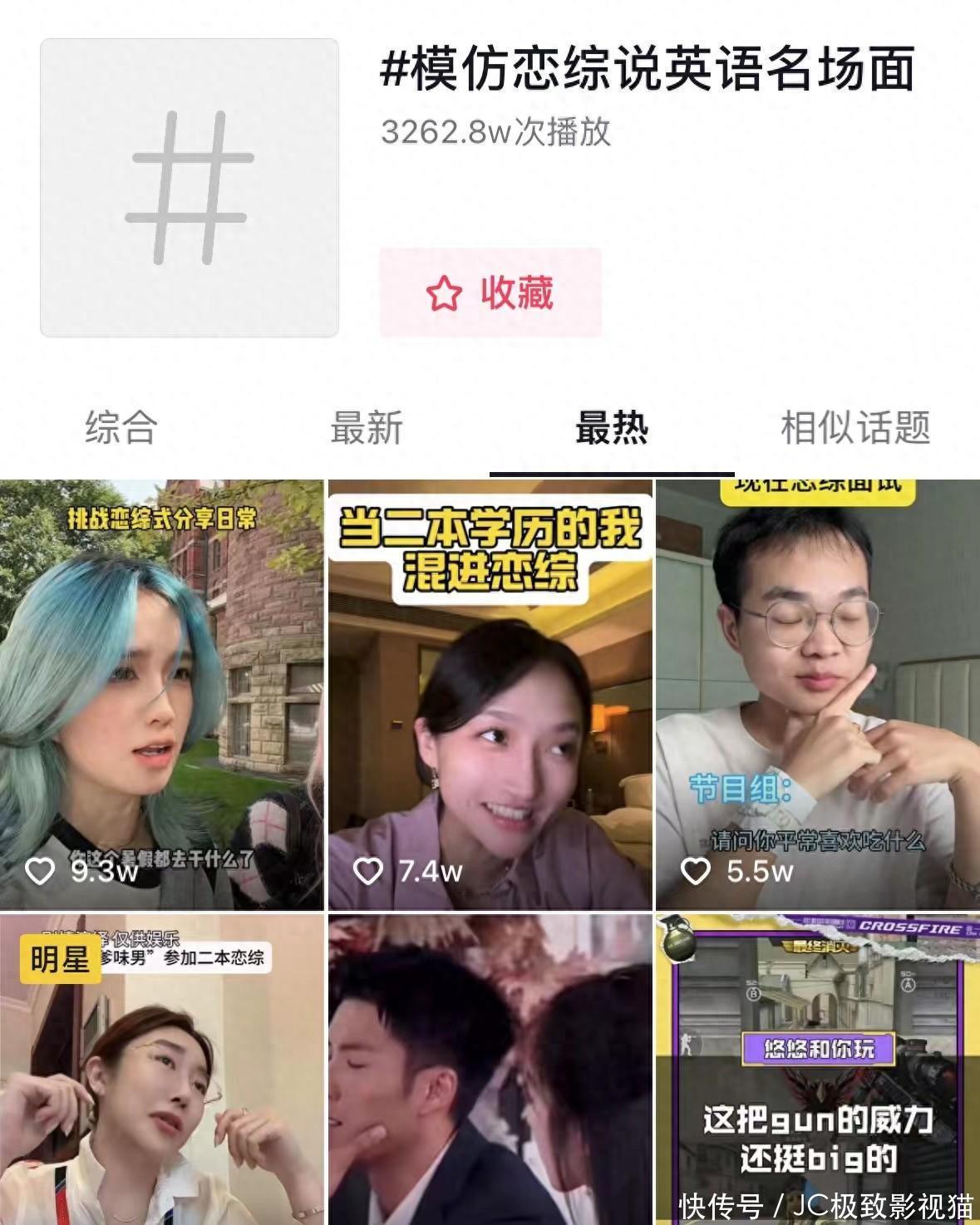 这样的桥段不啻在此一处出现,其他时刻对优厚降生的“超经意显现”也遭到不雅众常常冷眼。在话题的捏续发酵下,词条#有莫得二本恋综#登上微博热搜,收货1.2亿的浏览量和2.4万筹议。抖音话题“二本恋综”凭借关连师法视频取得超三千万次播放,“二本恋综”梗强势出圈。