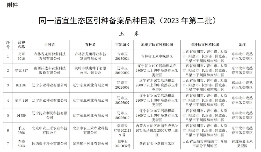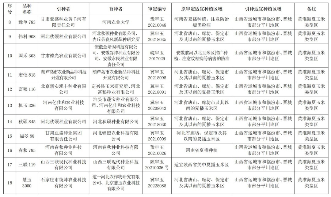 把柄《中华东说念主民共和国种子法》《主要农作物品种核定看法》的关联秩序,现将外省核定通过、与我省属团结恰当生态区的18个玉米品种引种备案信息(品种称呼、引种者、育种者、核定编号、原核定恰当训诲区域、引种恰当训诲区域)给以公告。